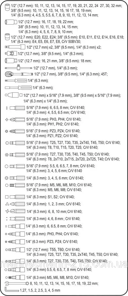 Основні характеристики Набір інструментів Vorel 58700 216 штук
